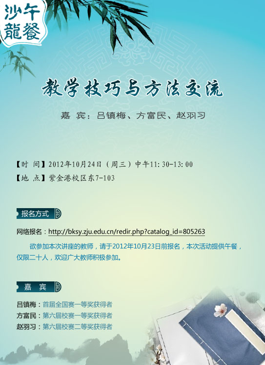 浙江大学教师教学发展中心关于“教学技巧与方法交流”午间沙龙通知