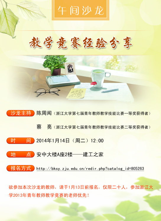 浙江大学教师教学发展中心关于“教学竞赛经验分享”沙龙的通知