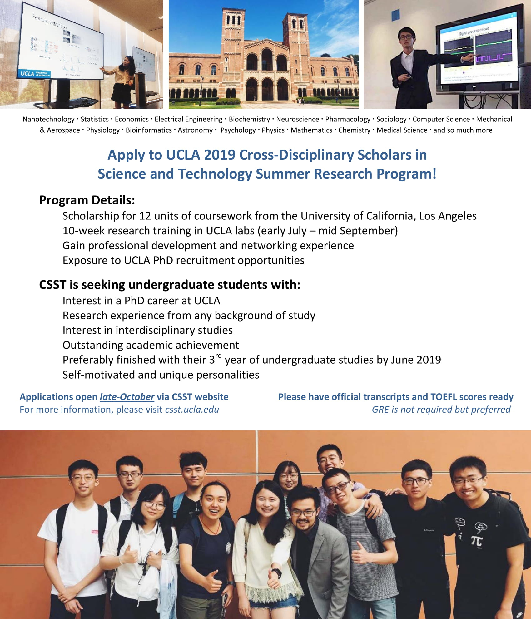 The online application for the 2019 CSST Program is now open. 【UCLA-CSST网申地址已更新,请大家及时申请!】