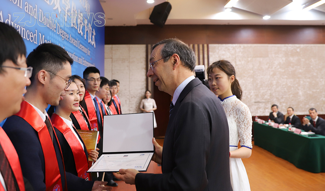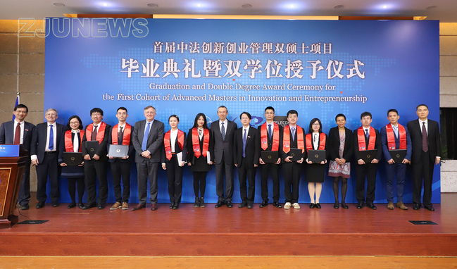 3月31日,首届中法创新创业管理双硕士项目毕业典礼暨双学位授予仪式在浙江大学紫金港校区举行。仪式授予了浙江大学中法创新创业管理双硕士联合培养项目首届全部10名学员法方学位,并授予5名学员浙江大学学位,双方共同见证中法高层次人才培养合作结出硕果。